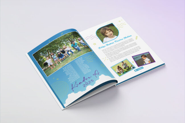 Anuario pensado especialmente para cursos que terminan la etapa de preescolar. Cuenta con las siguientes características: